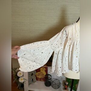 ASOS DESIGN White Eyelet Babydoll Trapeze Top Blouse Crop Womens Size 2 Festival