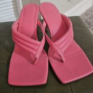 ASOS DESIGN Wide Fit Herring padded Toe Thong Heeled Sabdals. Neon Pink.NWOT