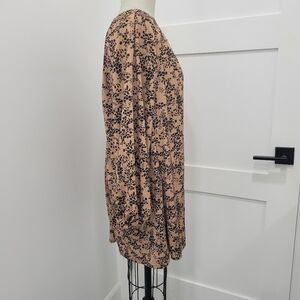 EUC Fun,Cute, ASOS DESIGN mini smock dress with long sleeves and tie neck detail in animal print size 2, V-neck, relax style, flowy, tie front, volume sleeves