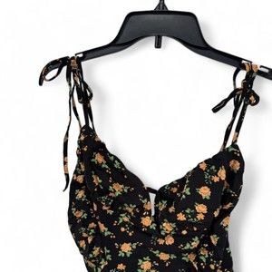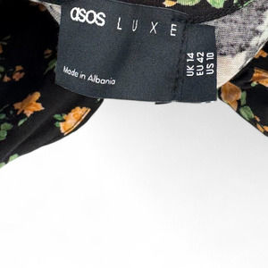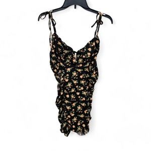ASOS DESIGN Women's Mini Dress Ruched Side Tie Straps Black Ditsy Floral Sz 10