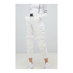 ASOS DESIGN Women's tapered jeans in winter white with utility styling and contrast stitch Size 28 NWT