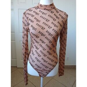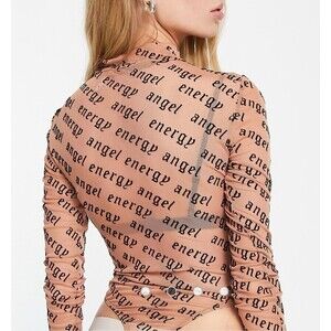This ASOS DESIGN bodysuit is a stylish addition to any wardrobe. The angel energy flocked pattern adds a unique touch to the classic camel color. The mock neck and long sleeves provide a comfortable fit, while the pullover closure adds ease of wear.
