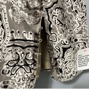 Stylish faux wrap dress with a paisley print. Extremely soft and comfortable. Completely lined other than the sleeves