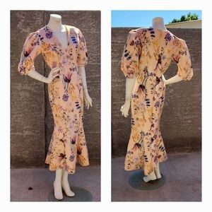 ASOS DESIGN‎ botanical floral bubble sleeve seamed midi dress