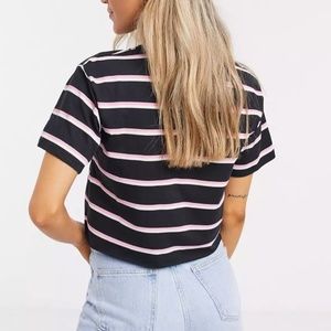 ASOS DESIGN boxy t-shirt w/notch neck in black with pink stripe