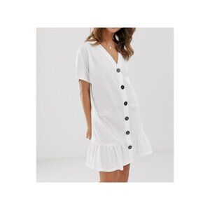 ASOS DESIGN button through slubby mini dress with pep hem White Size US 4 NWT