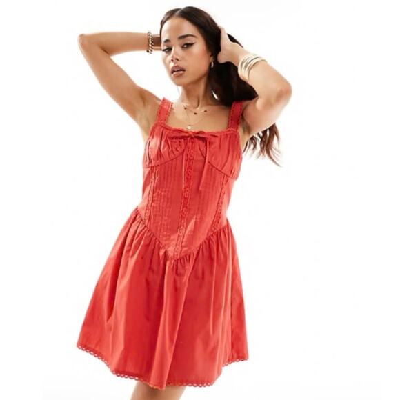 ASOS DESIGN corset bodice mini sundress with lace trim in red