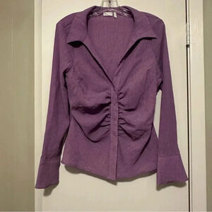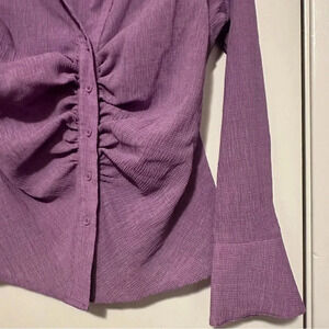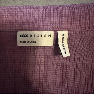 ASOS DESIGN crinkle textured ruched front shirt purple size 12