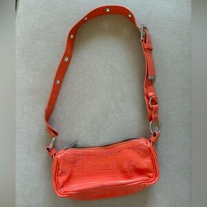 Faux croc faux leather bright orange purse with studded embellishment. Perfect for a festival! Worn once to Coachella :)