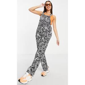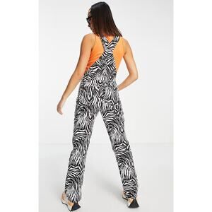 ASOS DESIGN denim '90's' straight leg overalls in zebra print