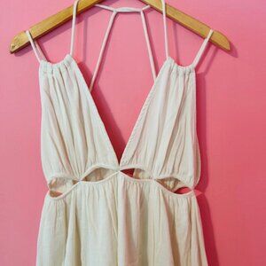 Cut-out detail Plunge neck, Fixed strap dress in Cream