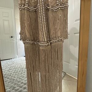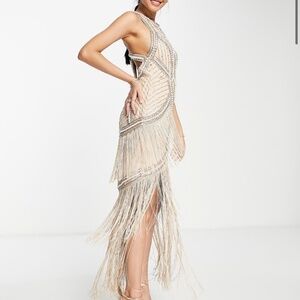 ASOS DESIGN embellished high neck maxi dress with fringe hem