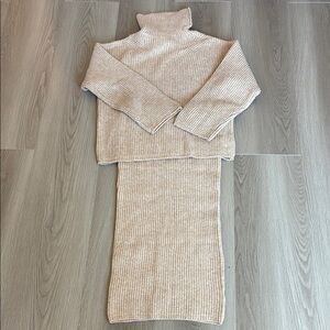 Stay warm and stylish with this cozy cream turtleneck sweater set. Perfect for any occasion, this set offers comfort and elegance.