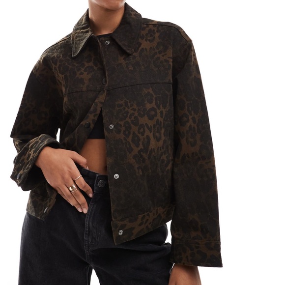 ASOS DESIGN boxy jacket with contrast stitch in leopard print- size 2. New with tags, never worn. Sold out on website.