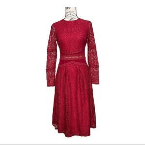 ASOS DESIGN long sleeve midi dress in lace with circle trim details in berry