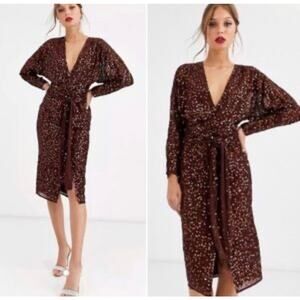 ASOS DESIGN midi dress with batwing sleeve and wrap waist in scatter sequin