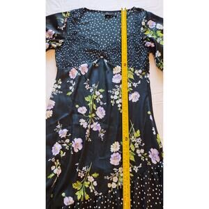 ASOS DESIGN mixed print ruched midi dress with puff sleeves Size 8