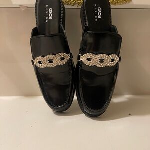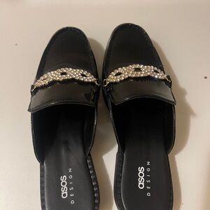 ASOS DESIGN mule loafers with trim detail in black faux leather new construction