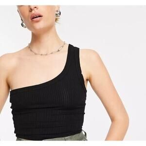 ASOS DESIGN Tall one shoulder ribbed crop top. black. good used condition. super stretchy, chest is 22-28 laying flat, length 17.5. plus size 16 xl 1x