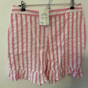 ASOS DESIGN pink stripe shorts with ruffle hem
