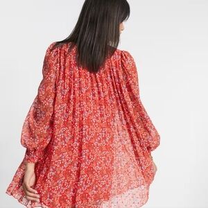 This elegant red sundress features a mock neck and 3/4 bishop sleeves, making it a stylish choice for wedding guests. Its flowing silhouette and lightweight fabric offer both comfort and sophistication, perfect for resort wear or casual occasions.