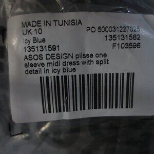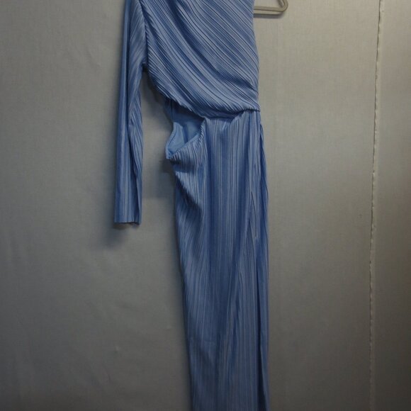 ASOS DESIGN plisse one sleeve midi dress with slit detail in icy blue - US 6
