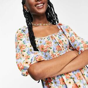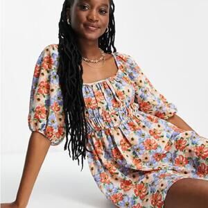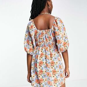 ASOS DESIGN ruched bust mini skater dress with puff sleeve in bold floral print 8