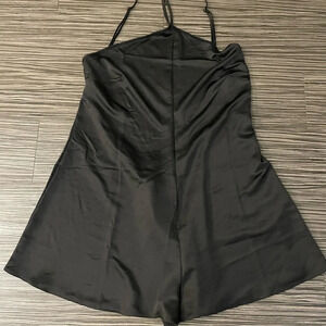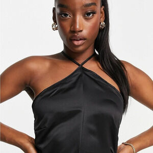ASOS DESIGN satin strappy halter romper in black Size 12