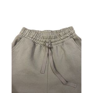 In brand new without tags, no issues or flaws to mention. Color is a gray/tope color. Elastic waist band with drawstring. Has pockets.