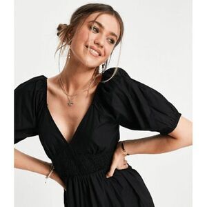ASOS DESIGN shirred waist broderie insert maxi dress in Black US 6