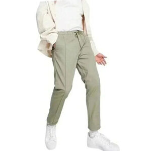 ASOS DESIGN skinny chinos with elasticized waist and pin tuck in light khaki