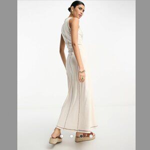 ASOS DESIGN sleeveless maxi dress ribbed contrast stitch in cream XS (US 0)