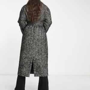 ASOS DESIGN smart herringbone belted coat in black and white