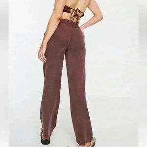 Super soft, lightweight material. Mahogany/maroon color. 100% Lyocell. Flowy, relaxed fit. Comfy and casual trouser.