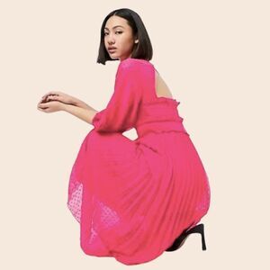 ASOS DESIGN textured pleated shirred midi dress in hot pink size 4
