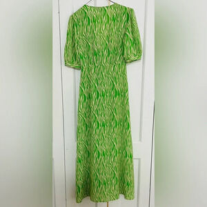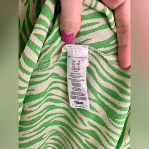 NWOT ASOS DESIGN tie front button up midi dress in green animal print