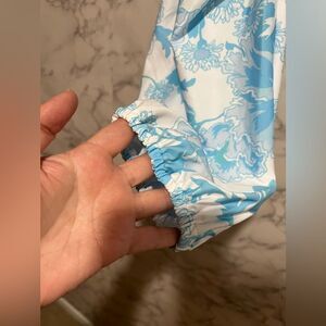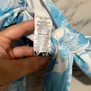 ASOS DESIGN tie front long sleeve bikini top in blue floral print