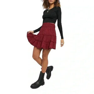 ASOS DESIGN tiered mini skirt in red and black animal print