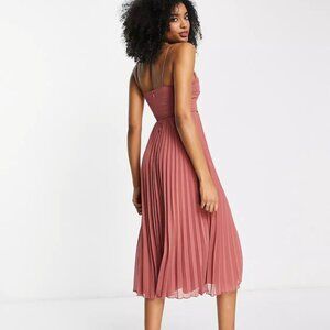 ASOS DESIGN twist front pleated cami midi dress with belt in rose pink