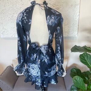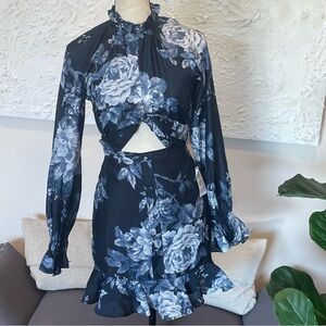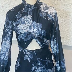ASOS DESIGN voile mini dress knot front detail navy rose print Sz 2 NWT