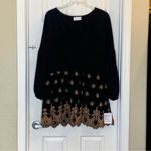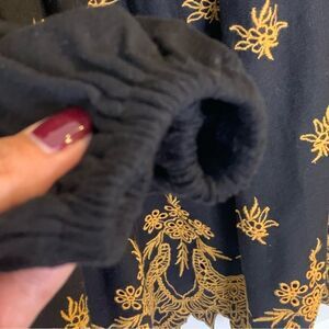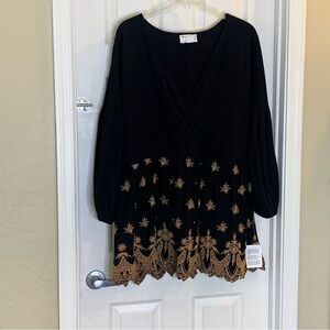 ASOS DESIGN wrap dress with gold cutwork embroidery detail in black Size 14