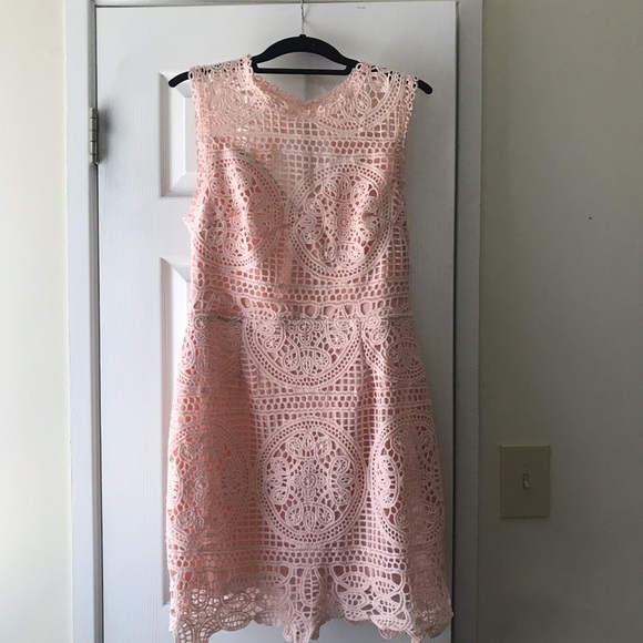 ASOS Blush/Light Pink dress Open back Beautiful Crotchet design Flattering Fit