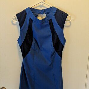 ASOS Dark Blue Sleeveless Career Style Bodycon Dress Mesh Contrast Open Back