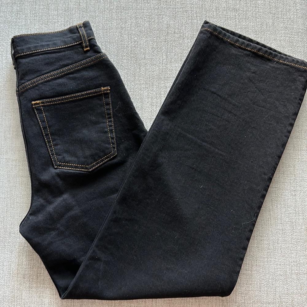 Straight Leg. Black with Cognac Stitching. Waist: 26”. Inseam: 31”. 99%