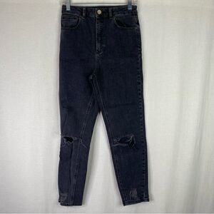 ASOS Denim Faded Black Distressed High Rise Boyfriend Jeans Stretch 28/32
