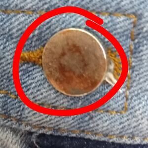 Does have some imperfections shown in photos. All buttons have discoloration on them. Fabric imperfection on back of dress