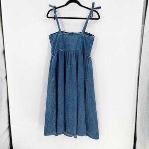 ASOS Denim midi dress shoulder ties pockets heavy cotton size 8 prairie cottage