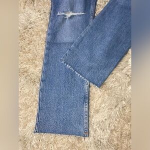 ASOS Design 90’s Women’s Raw Hem Destructed High Rise Mom Straight Leg Denim Jeans Size 26/32