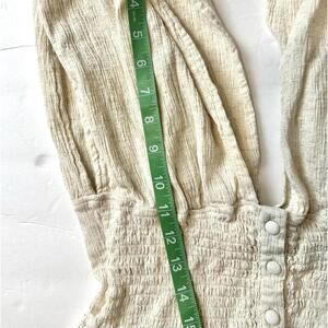 The ASOS Design Beige V Neck Flowy Boho Dress in size US8 is a stylish and chic option for women looking for a bohemian-inspired outfit. Featuring a sleeveless design, button closure, and a flattering fit & flare style. The beige color adds a touch of elegance, while the V-neckline adds a trendy touch. Perfect for casual or dressed-up occasions, this ASOS dress is sure to become a versatile staple in any woman's wardrobe.