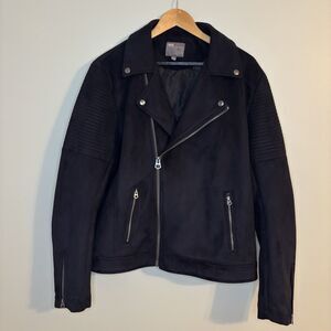 ASOS Design Biker Jacket Black Faux Suede Asymmetrical Zip Moto Jacket L
